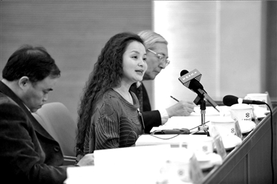 昨天上午,中国音乐学院声乐歌剧系教授吴碧霞在北京代表团会场作报告。