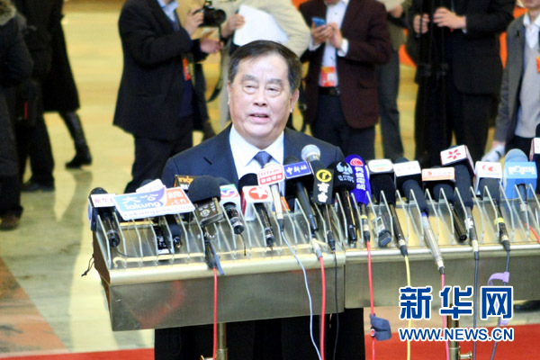3月10日,列席十二届人大一次会议的铁道部长盛光祖在人民大会堂北门入口接受媒体记者采访。新华网记者 杨理光摄