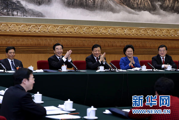 3月10日,中共中央政治局常委、中央书记处书记刘云山参加十二届全国人大一次会议河北代表团的审议。新华社记者庞兴雷摄