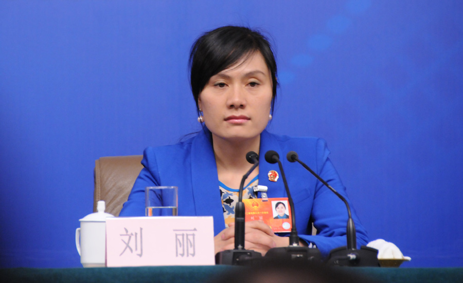 3月10日下午3时,十二届全国人大一次会议新闻中心在梅地亚中心多功能厅举行“一线工人农民代表谈履职”为主题的记者会,邀请六位代表就相关问题回答中外记者提问。图为厦门三度足浴有限公司职工刘丽. 新华网/中国政府网 王翰林 摄