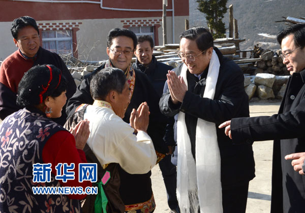 2013年1月7日,俞正声来到四川省甘孜藏族自治州炉城镇老榆林村党支部书记龚先彬家,了解当地群众生产生活情况和基层党组织建设情况。新华社记者 马占成 摄