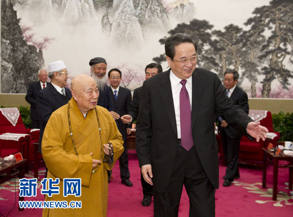 2013年2月4日,俞正声邀请全国性宗教团体负责人到北京中南海座谈,共庆新春佳节。 新华社记者 黄敬文 摄