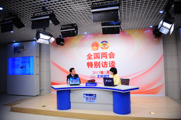 2013年3月11日,全国人大代表、内蒙古巴彦淖尔市长段志强做客新华网两会访谈。新华网 李欣 摄