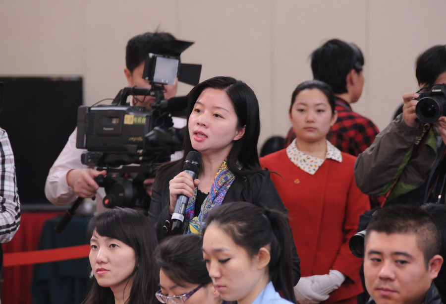 3月11日上午10时,十二届全国人大一次会议新闻中心在梅地亚中心多功能厅举行记者会,中央机构编制委员会办公室王峰副主任就“《国务院机构改革和职能转变方案》有关内容和考虑”回答中外记者的提问。图为中国国际广播电台和国际在线记者提问。 新华网/中国政府网 王翰林 摄