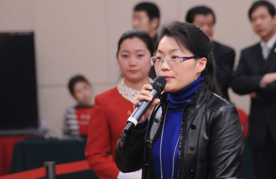 3月11日上午10时,十二届全国人大一次会议新闻中心在梅地亚中心多功能厅举行记者会,中央机构编制委员会办公室王峰副主任就“《国务院机构改革和职能转变方案》有关内容和考虑”回答中外记者的提问。图为中国食品安全报记者提问。 新华网/中国政府网 王翰林 摄
