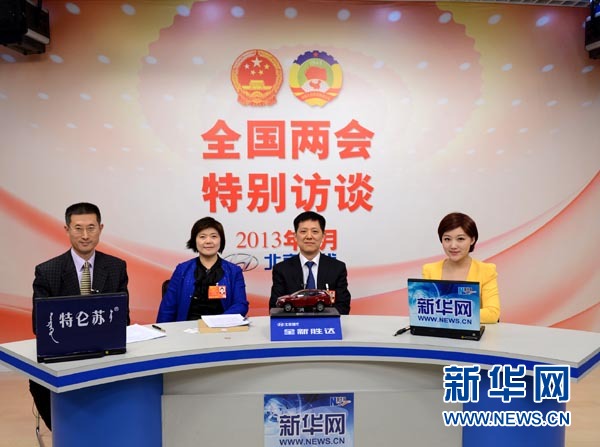 2013年3月11日,新华网邀请全国人大代表、辽宁证监局局长潘学先;全国人大代表、吉林证监局局长万玲玲;全国人大代表、湖北证监局局长芮跃华做客,就资本市场如何更好的服务实体经济、当前中国股市所面临的机遇与挑战等广大网友关心的话题进行在线交流。图为访谈进行中。新华网 郭小天 摄