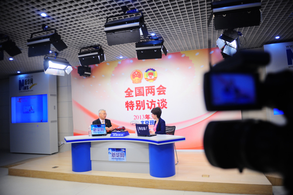 2013年3月11日,全国人大代表、三亚市市长王勇做客新华网两会访谈,与网友谈旅游经济。新华网 李欣 摄