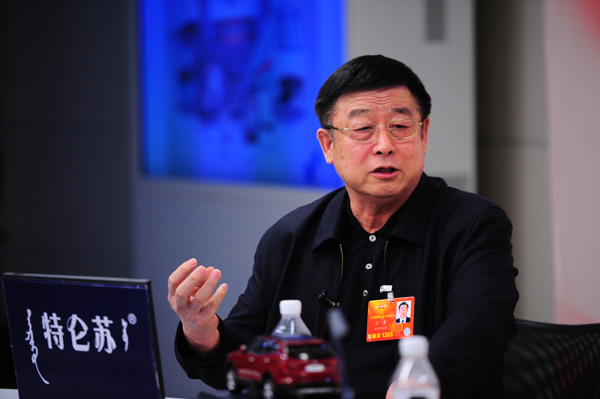 2013年3月12日,全国人大代表、山东滨州市韩店镇西王村党委书记王勇做客新华网两会特别访谈,与网友交流城镇化相关话题。新华网 李欣 摄