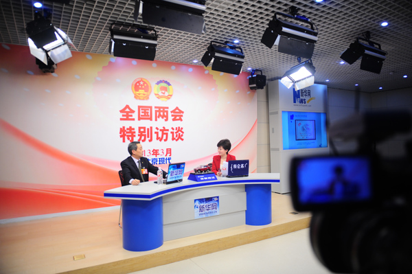 2013年3月12日,全国人大代表、河南义马煤业集团党委书记、董事长武予鲁做客网两会访谈。新华网 李欣 摄