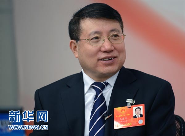 2013年3月12日,全国人大代表、遵义市副书记、市长王秉清做客新华网,谈两会议案建议。图为访谈嘉宾王秉清。新华网 郭小天 摄