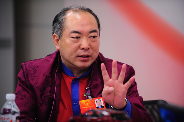 2013年3月13日,全国人大代表、中华慈善总会名誉副会长周森做客新华网两会访谈,与网友谈他的两会议案建议。新华网 李欣 摄