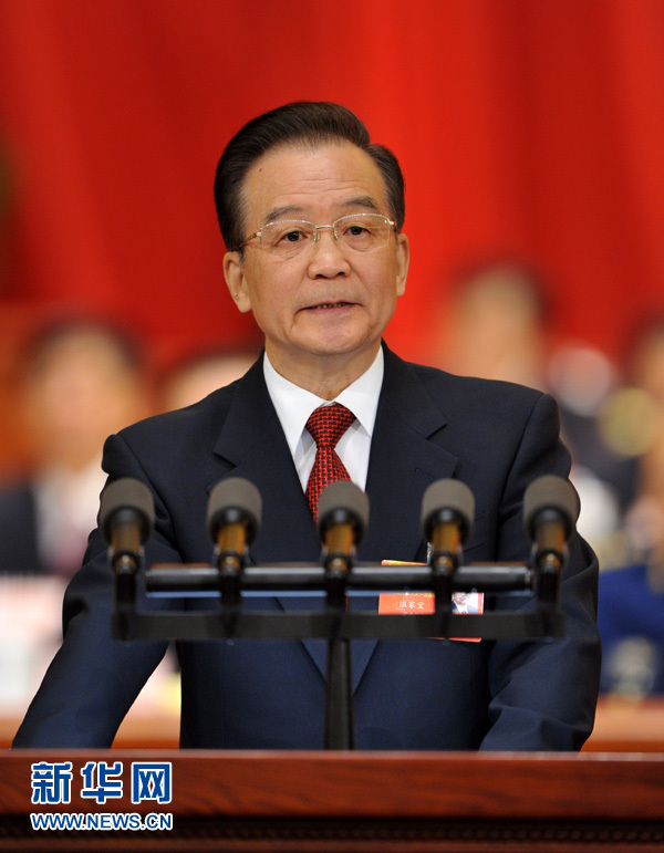 3月5日,第十二届全国人民代表大会第一次会议在北京人民大会堂开幕。国务院总理温家宝作政府工作报告。 新华社记者 黄敬文 摄