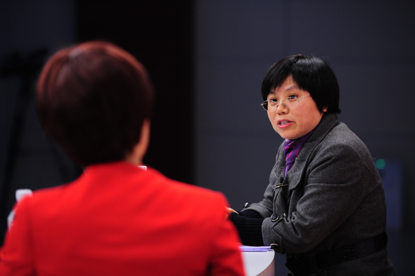 2013年3月14日,北京明锐诚升节水科技有限公司总经理王凤蕊做客新华网访谈。新华网 李欣 摄