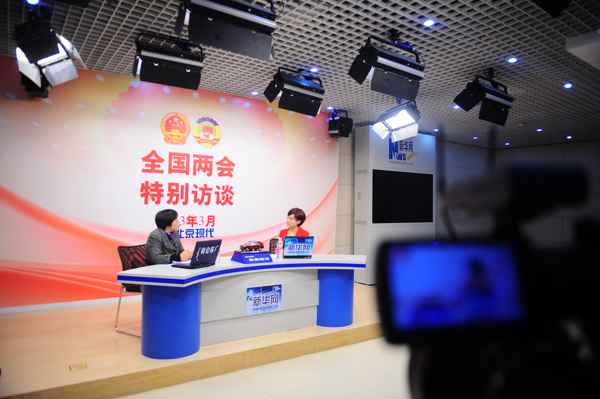 2013年3月14日,北京明锐诚升节水科技有限公司总经理王凤蕊做客新华网访谈。新华网 李欣 摄