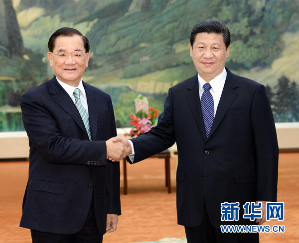 2013年2月25日,习近平在北京人民大会堂会见中国国民党荣誉主席连战。 新华社记者 李涛 摄