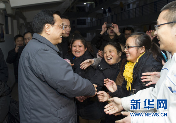 2012年12月27日,李克强来到江西九江经济技术开发区职工宿舍楼,看望住在这里的农民工和家属。 新华社发