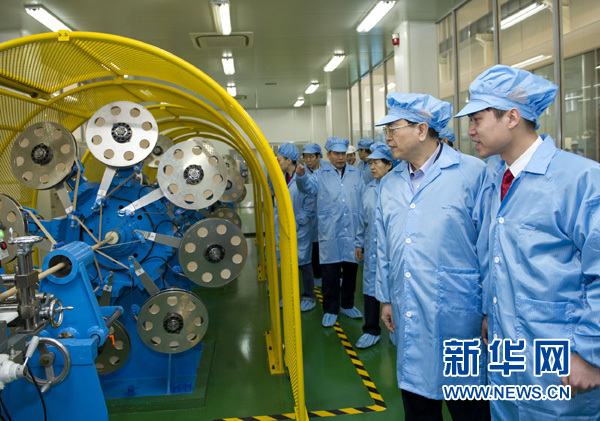 2013年2月22日,张德江在富通(天津)超导技术应用有限公司,视察超导技术应用实验室。 新华社记者 黄敬文 摄