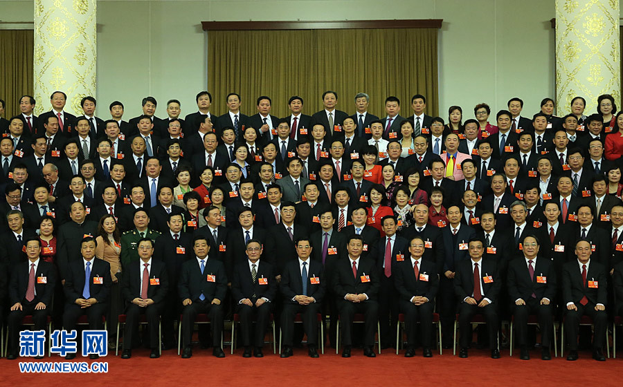 习近平胡锦涛等与出席十二届全国人大一次会议的全体代表合影留念