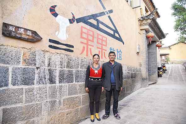▲2020年12月31日,中寨司莫拉佤族村村民李发果和丈夫在自家经营的旅馆前。新华社记者林碧锋摄