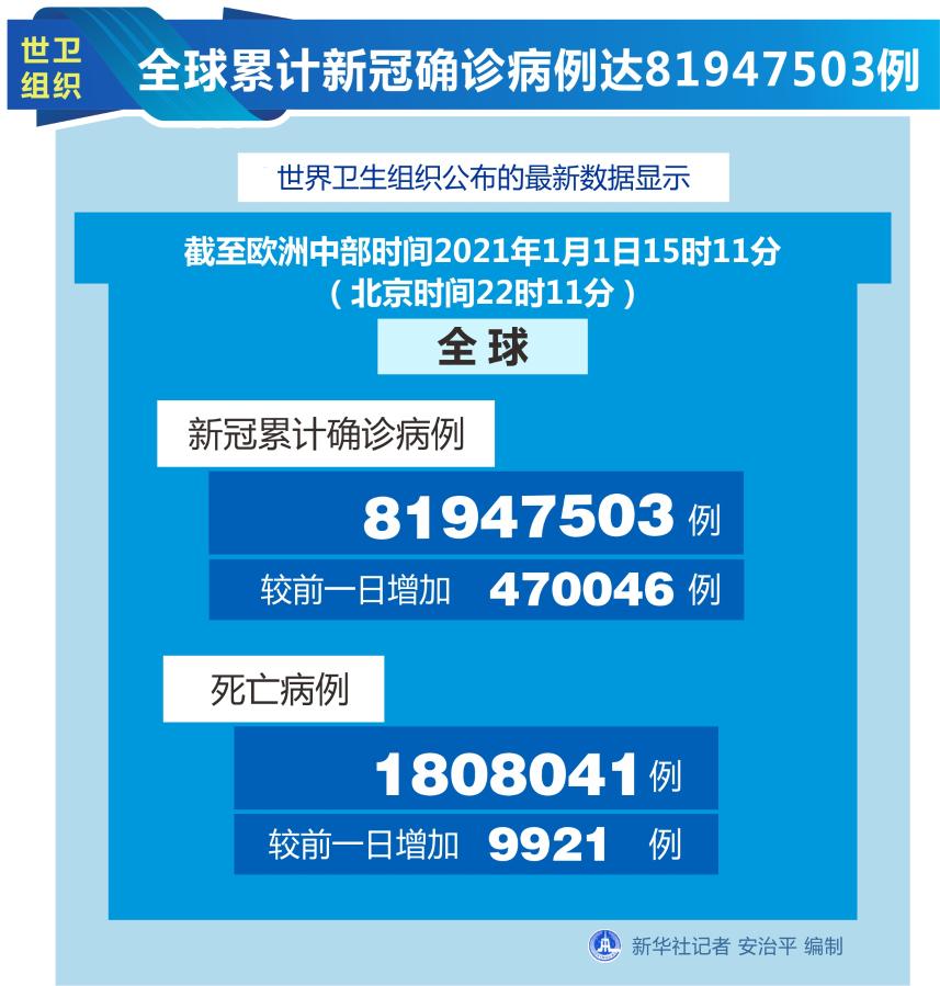 新华社日内瓦1月1日电(记者刘曲)世界卫生组织1日公布的最新数据显示,全球累计新冠确诊病例达81947503例。