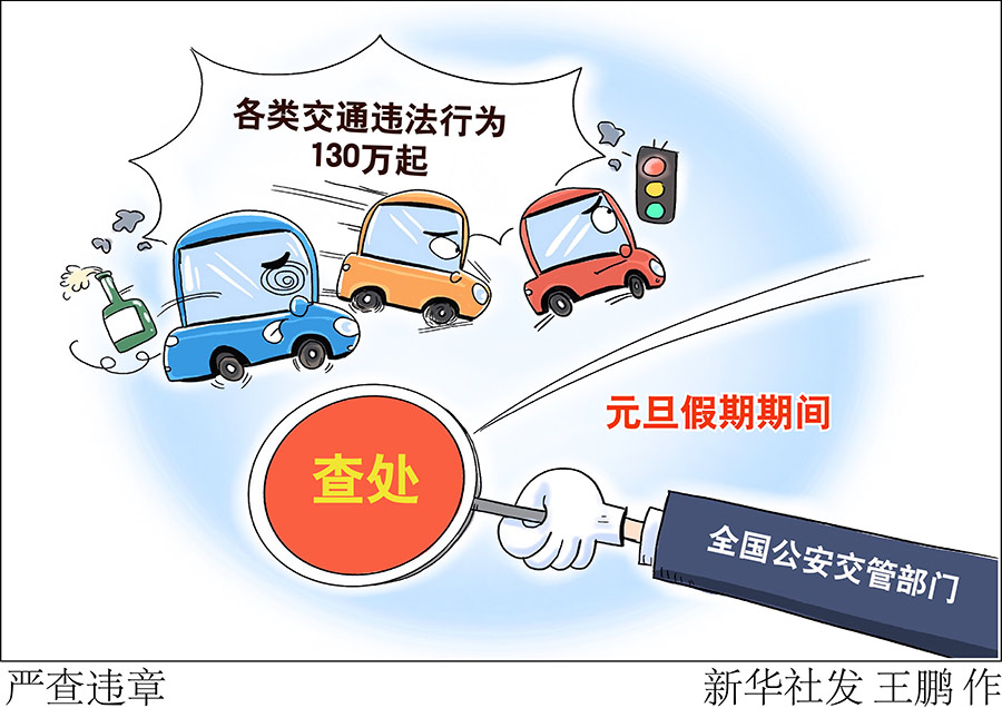 新华社北京1月3日电 记者3日从公安部交管局获悉,元旦假期期间,全国公安交管部门日均出动警力19万人次、警车7万辆次,共查处各类交通违法行为130万起。元旦当日,各地集中开展了酒驾醉驾全国周末夜查统一行动,共查处酒驾醉驾4200余起。