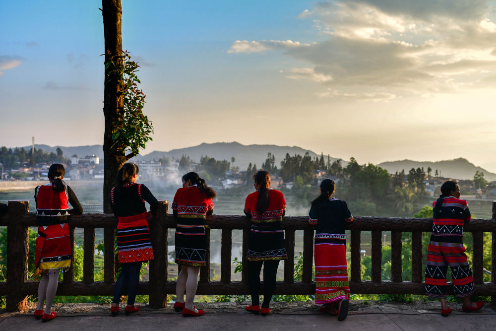 ↑2020年5月15日,云南省腾冲市清水乡三家村中寨司莫拉佤族村村民在广场上休息。新华社记者 胡超 摄
