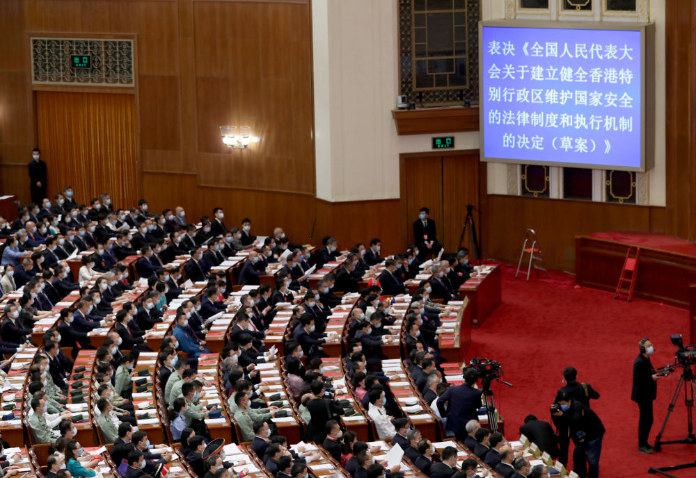 ↑2020年5月28日,第十三届全国人民代表大会第三次会议在北京人民大会堂闭幕。大会通过全国人民代表大会关于建立健全香港特别行政区维护国家安全的法律制度和执行机制的决定。新华社记者 丁海涛 摄