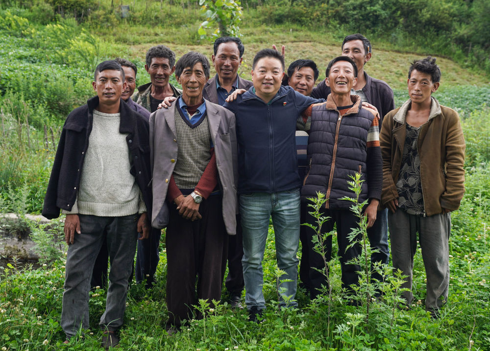 ↑2020年6月22日, 派驻到四川省凉山彝族自治州布拖县觉撒乡的帮扶干部杨永林(前排中)和彝族群众合影。新华社记者 江宏景 摄