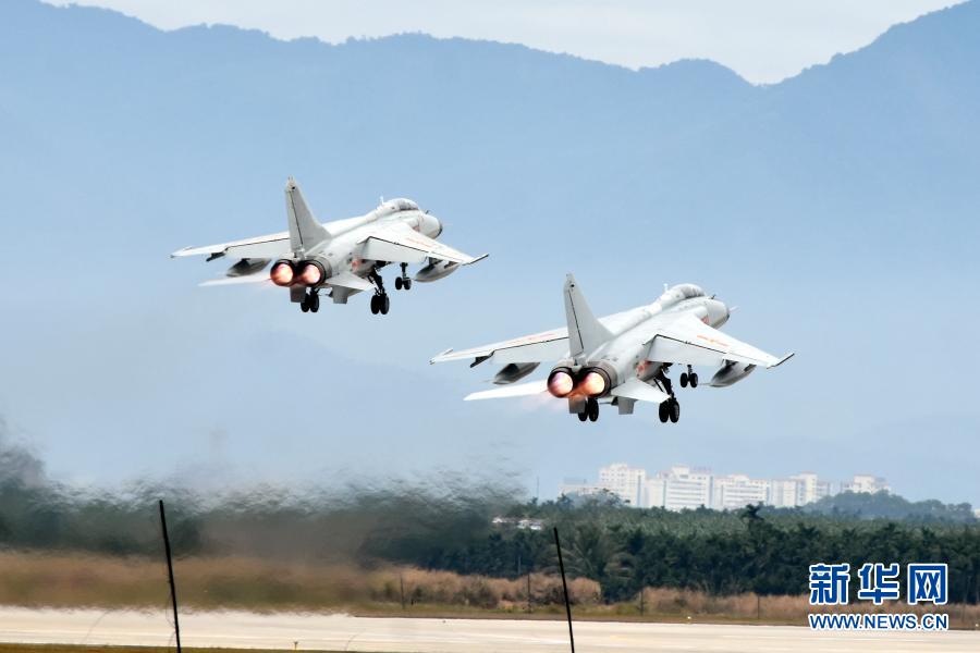 1月5日,南部战区海军航空兵某旅组织新年度首次飞行训练。这是双机起飞。新华社发(赖伟 摄)