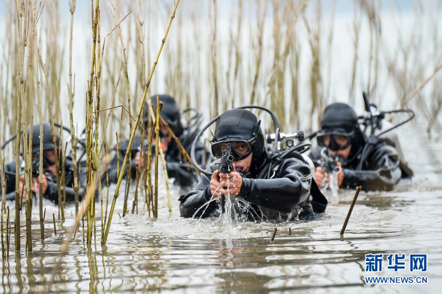 1月4日,海军陆战队某旅特战队员在训练场上进行特种射击训练。新华社发(关亚斐 摄)