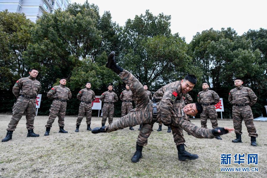 1月5日,武警江苏总队泰州支队组织官兵进行搏击课目训练。新华社发(杨玉岗 摄)