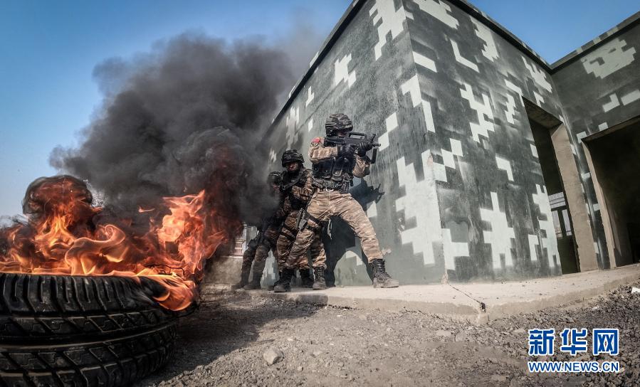 1月4日,武警新疆总队吐鲁番支队组织特战队员开展房屋反劫持训练。新华社发(王小杰 摄)
