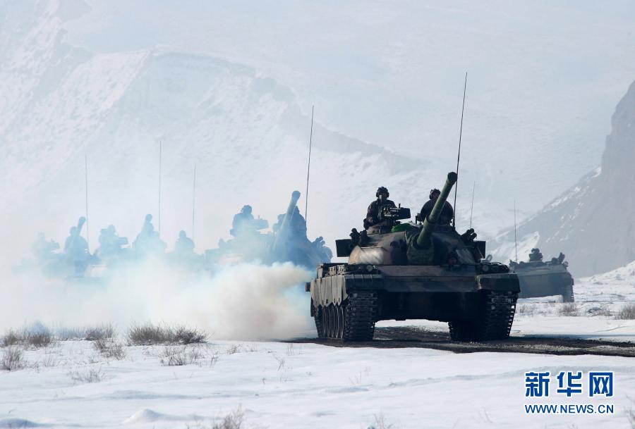 1月4日,新疆军区某团在严寒条件下,组织装甲分队展开机动协同训练。新华社发(袁凯 摄)