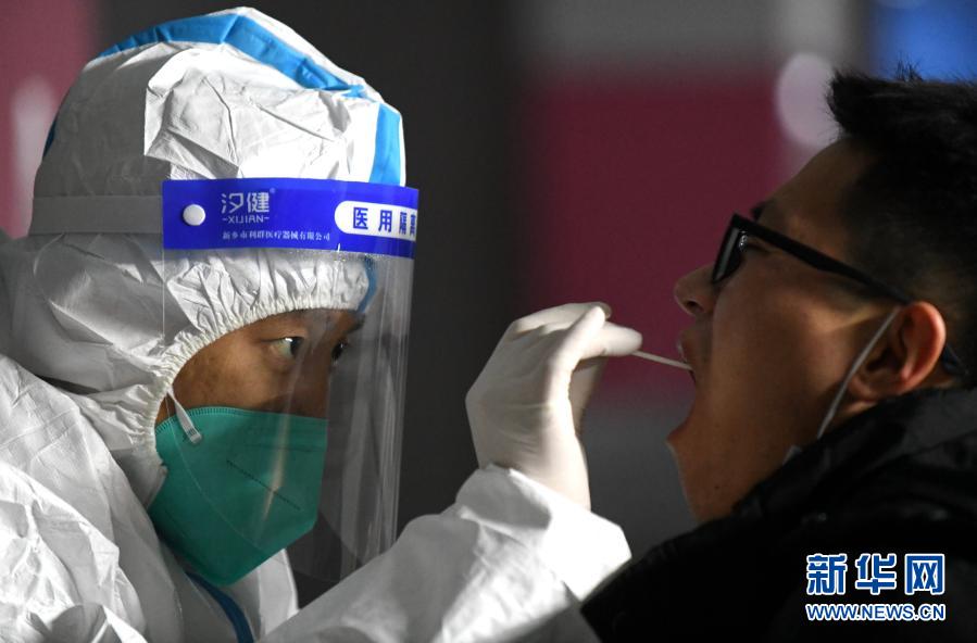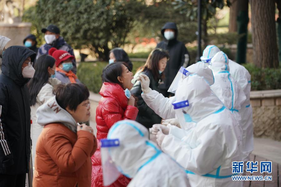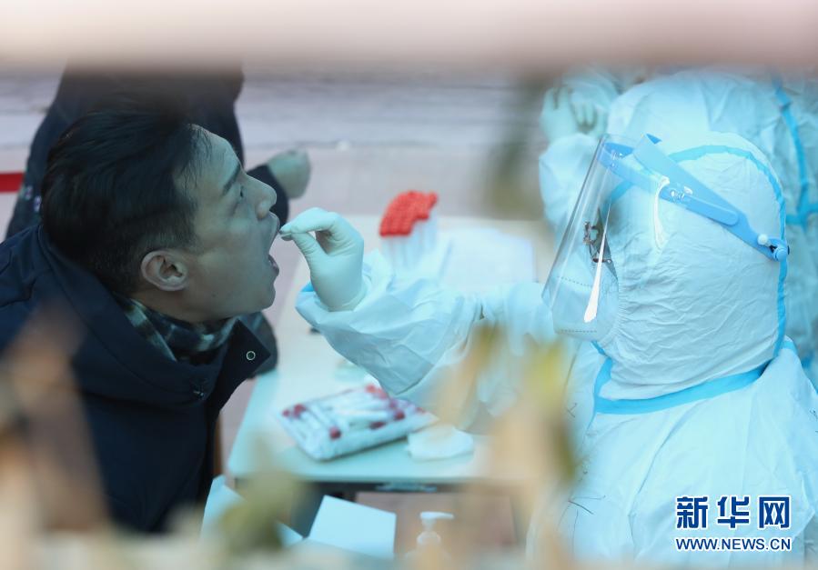 1月6日,在石家庄市桥西区天滋嘉鲤社区,医护人员为居民进行核酸采样。新华社发