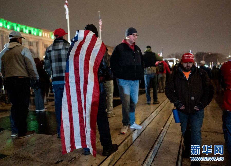 1月5日,美国总统特朗普的支持者在首都华盛顿参加集会。从5日起,上万名美国右翼选民在总统特朗普号召下,从各州赶赴华盛顿。新华社记者 刘杰 摄