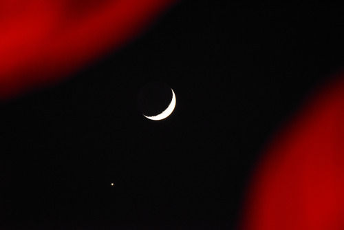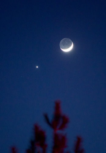 这是2017年1月2日在内蒙古呼和浩特市拍摄的“金星合月”。(新华社发)