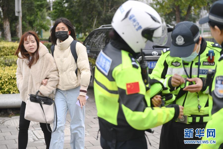 2021年1月7日,女子铁骑队员在整理警容和装备时,吸引了路人关注。