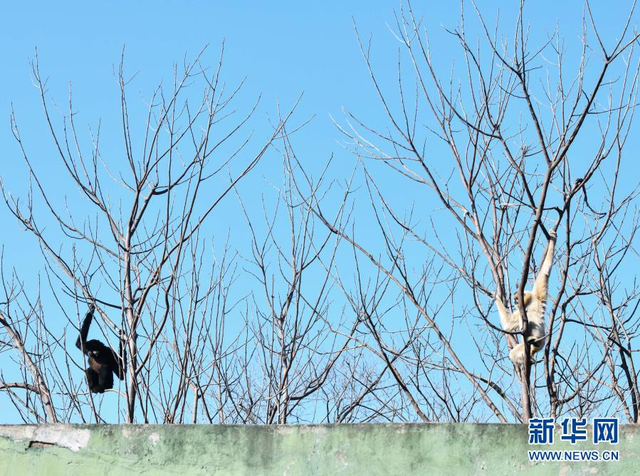 1月8日在合肥野生动物园拍摄的长臂猿。