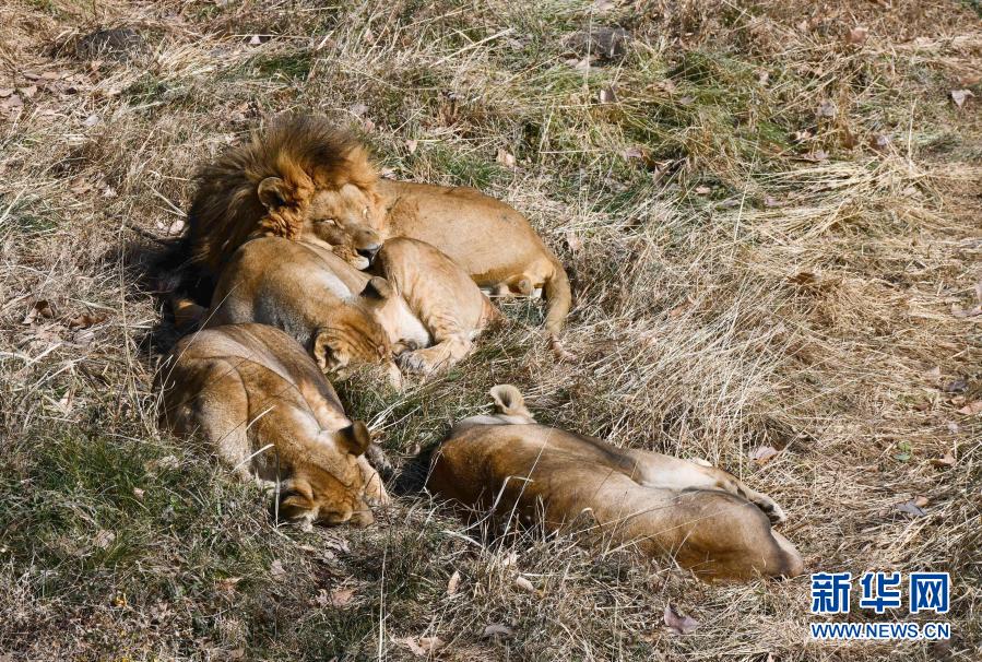 当日合肥市天气晴朗,动物园的小动物慵懒地享受冬日阳光。