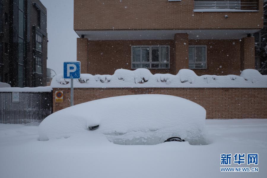 这是1月9日在西班牙马德里拍摄的一辆被雪掩埋的汽车。