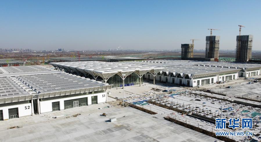 1月7日拍摄的国家会展中心(天津)施工现场(无人机照片)。新华社记者 赵子硕 摄