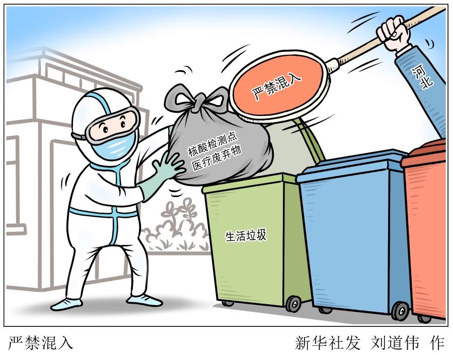 新华社石家庄1月13日电(记者王昆)记者从河北省住房和城乡建设厅了解到,为切实保护人民群众生命安全和身体健康,河北省进一步强化疫情防控期间生活垃圾科学精准处置工作。其中,社区、村庄等设置的核酸检测点产生的医疗废弃物纳入医疗废物进行管理,由检测单位会同物业、居(村)委会等做好收集,交由医疗废物处置单位或应急处置备用单位处置,严禁混入生活垃圾。