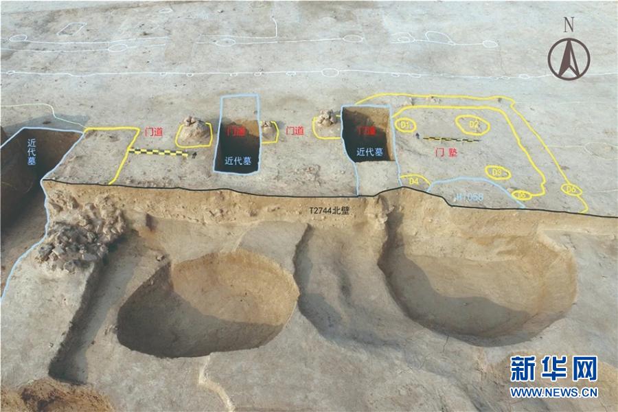 这是河南省巩义市双槐树遗址二号院“一门三道”门道遗迹。新华社发