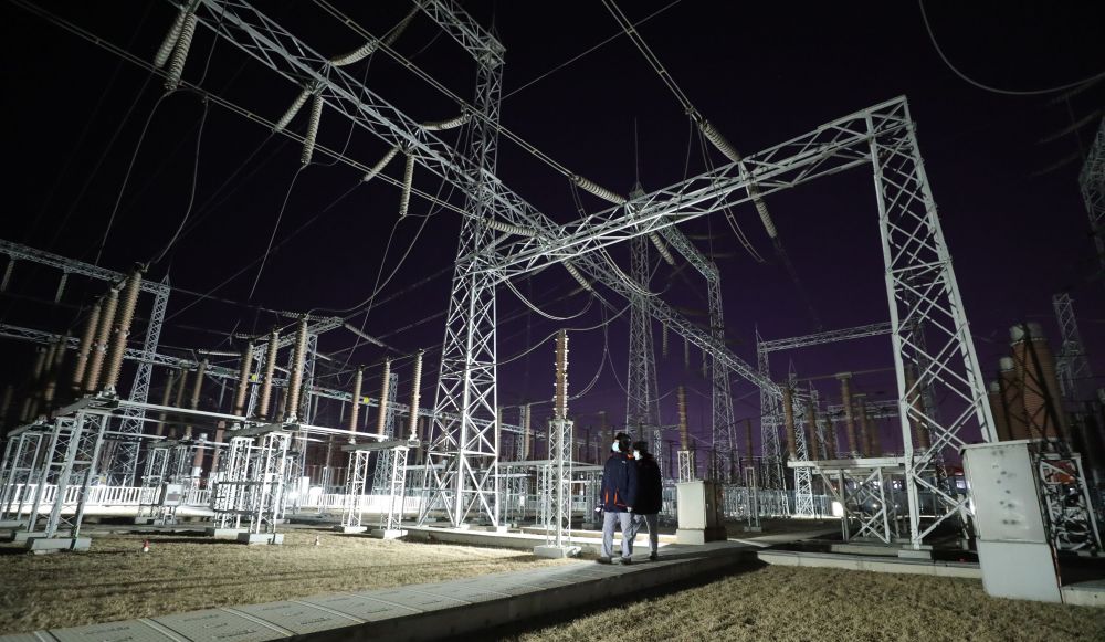 1月7日,在国家电网沈阳供电公司浑河变电站,工作人员在寒风中对电力设施进行巡视。新华社记者 杨青 摄