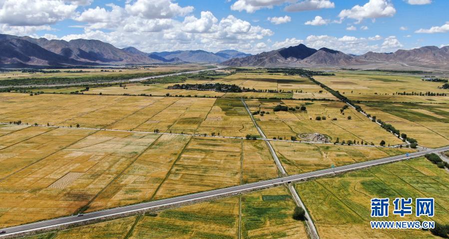 俯瞰西藏日喀则市白朗县的农田(2019年8月31日摄,无人机照片)。新华社记者 晋美多吉 摄