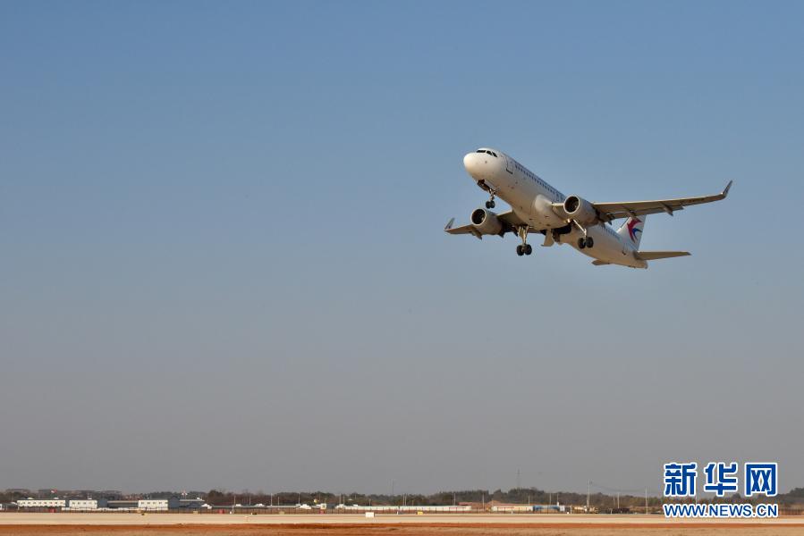 1月13日,执行验证试飞任务的中国东方航空空客A320型客机从芜湖宣州机场起飞。新华社记者 汤阳 摄