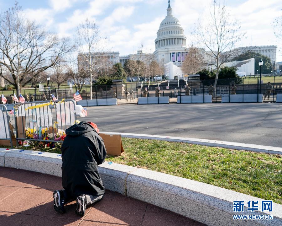 1月13日,在美国首都华盛顿,一名男子在国会大厦附近祈祷。新华社记者 刘杰 摄