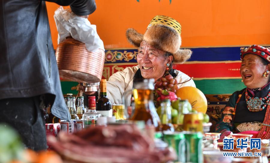 当日,西藏日喀则迎来农家新年。在位于萨迦县扯休乡,毗邻318国道的嘎吉林村安置点,村民们欢度搬迁新居后的第一个新年。