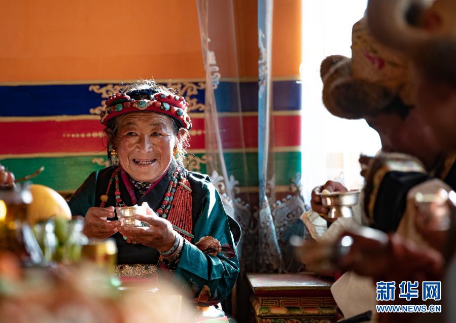 当日,西藏日喀则迎来农家新年。在位于萨迦县扯休乡,毗邻318国道的嘎吉林村安置点,村民们欢度搬迁新居后的第一个新年。