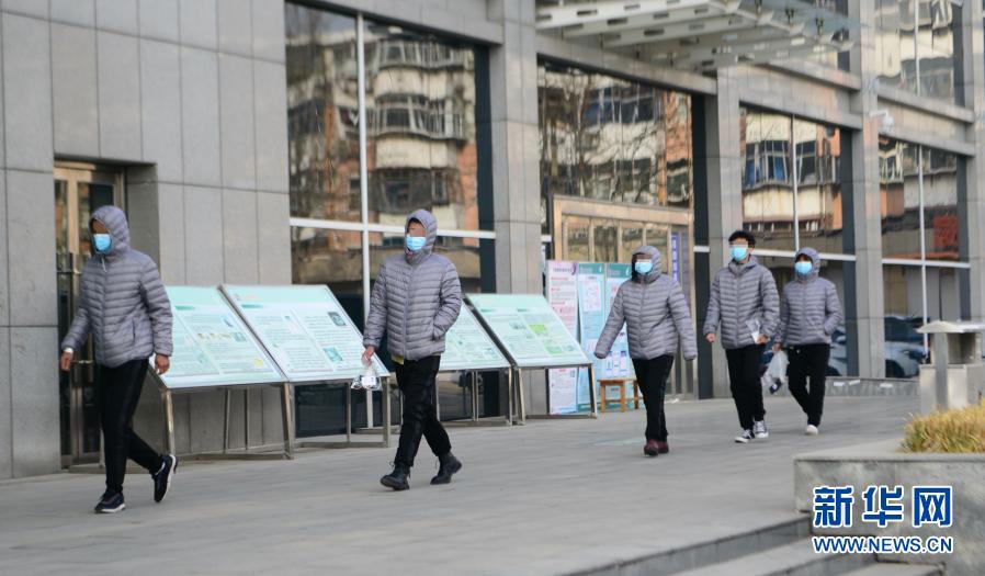 1月14日,在河北省胸科医院,治愈出院的新冠肺炎患者等车前往集中隔离点。 新华社记者 金皓原 摄
